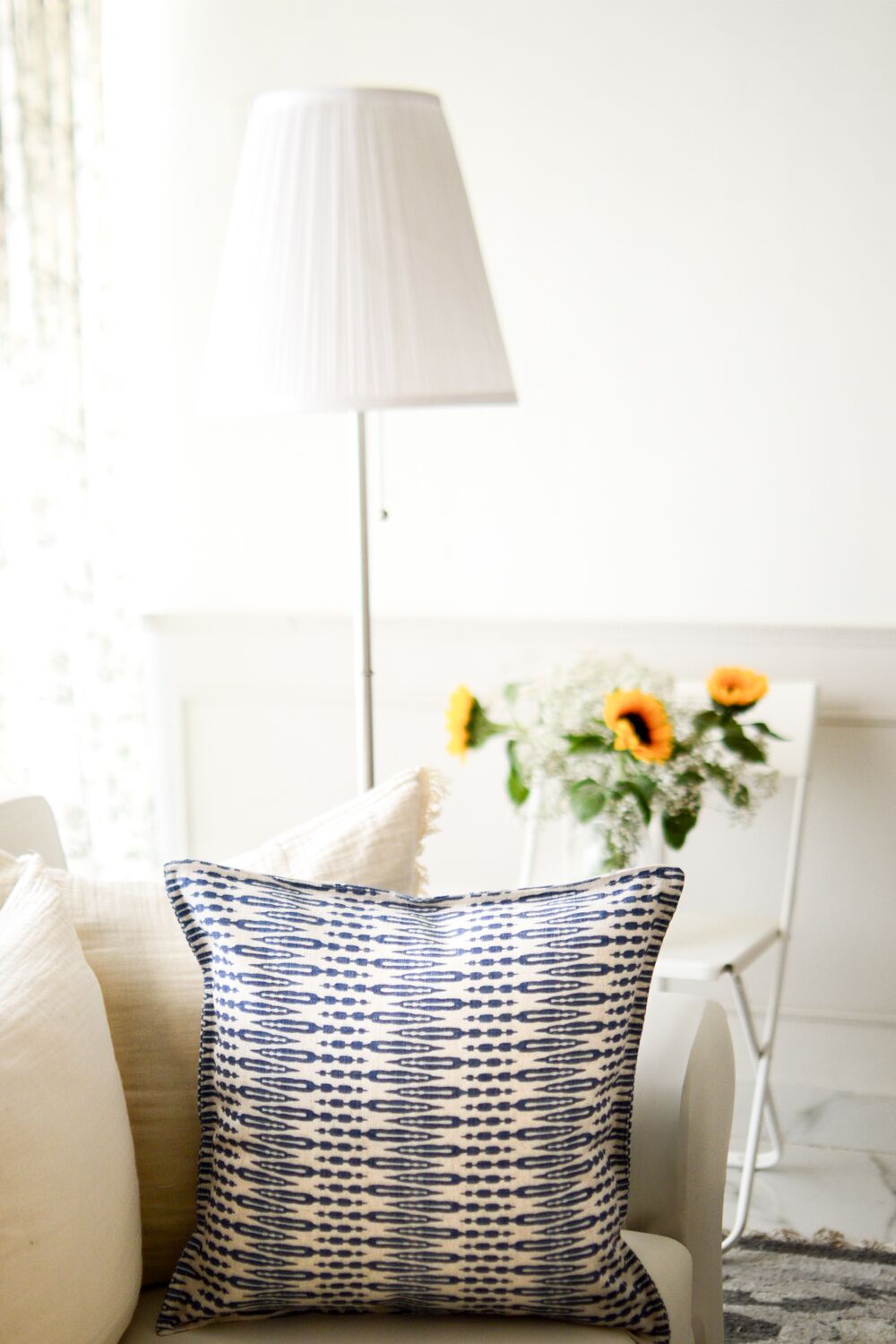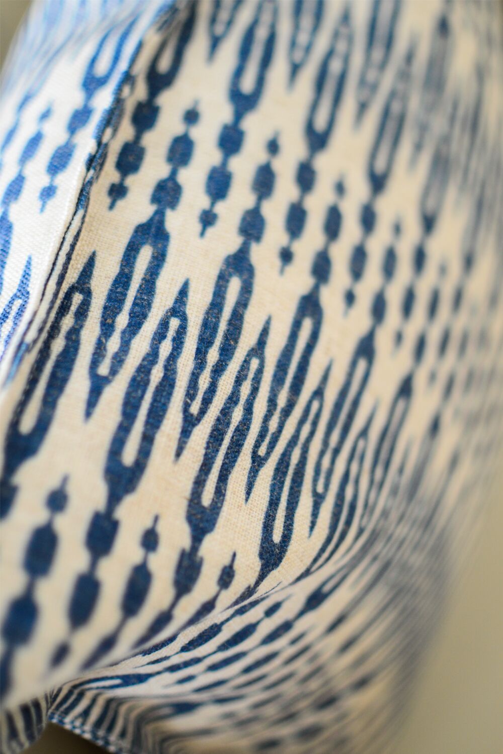 Our Farm Ikat cushion promises home-spun charm with its rich indigo design that flows beautifully on a warm oatmeal linen-feel fabric: pair it with solids or keep it as is for a bit of easy elegance.