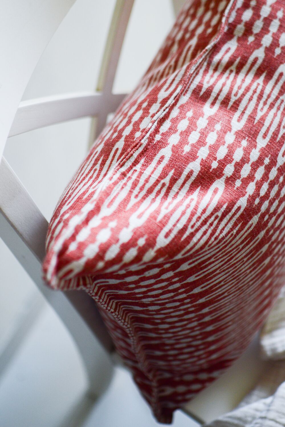 Snuggle up with our Farm Ikat cushion cover that adds oodles of cosiness to your space with its rich terracotta tones. It has that hand-touched, slightly wobbly pattern that just feels real, warm and inviting, like sun-baked earth.