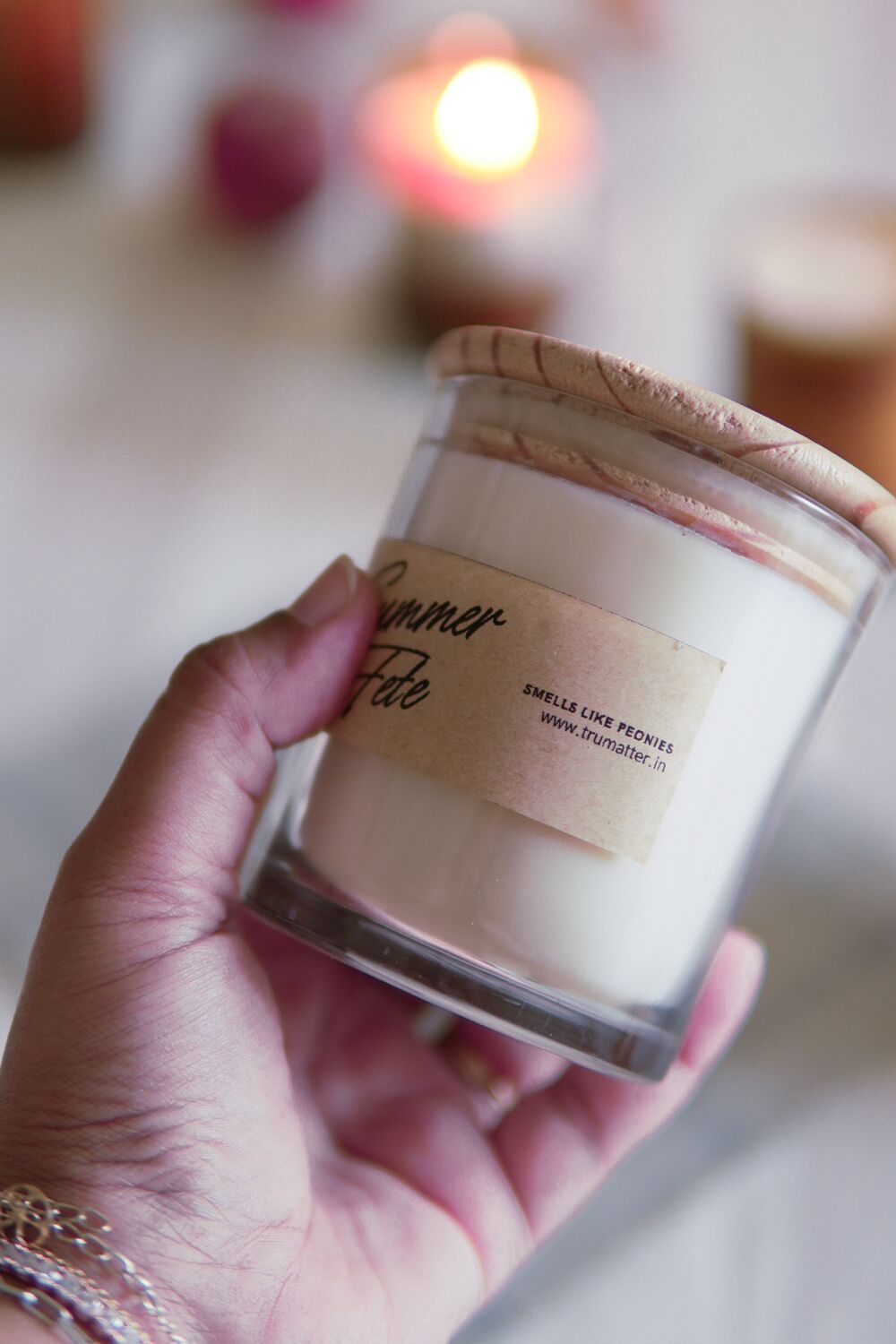 Celebrate the joyful spirit of summer (or counter the gloominess of the monsoon) with our Summer Fete Scented Soy Wax Candle. This vibrant and effervescent fragrance blends the crisp elegance of champagne, the lush sweetness of peony, and the comforting richness of almond crème.