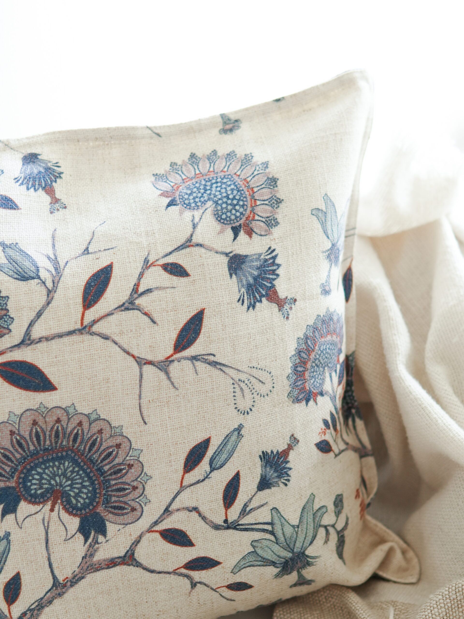 The Triana cushion cover takes inspiration from the Indian Paisley and adds a whole lot of drama with its large, sweeping floral vines on soft linen-feel fabric. And yet, it’s not overwhelming. Instead, and thanks to its delicate pattern, it looks incredibly inviting and sophisticated.